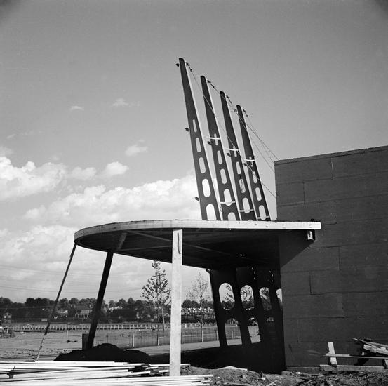 [Marine Transportation building under construction at the New York World's Fair site.]