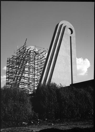 [North Corona entrance to the New York World's Fair. Construction of pylon.]