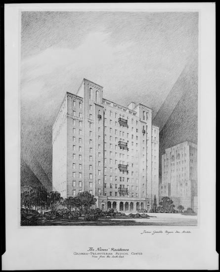 Sketch Perspective of the Columbia-Presbyterian Medical Center. View from the South East