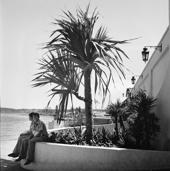 [Two boys at the Florida pavilion overlooking Fountain Lake, New York World's Fair.]