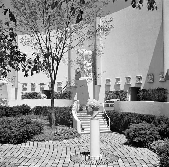 [New York World's Fair Administration building with "Mithrana" sculpture.]