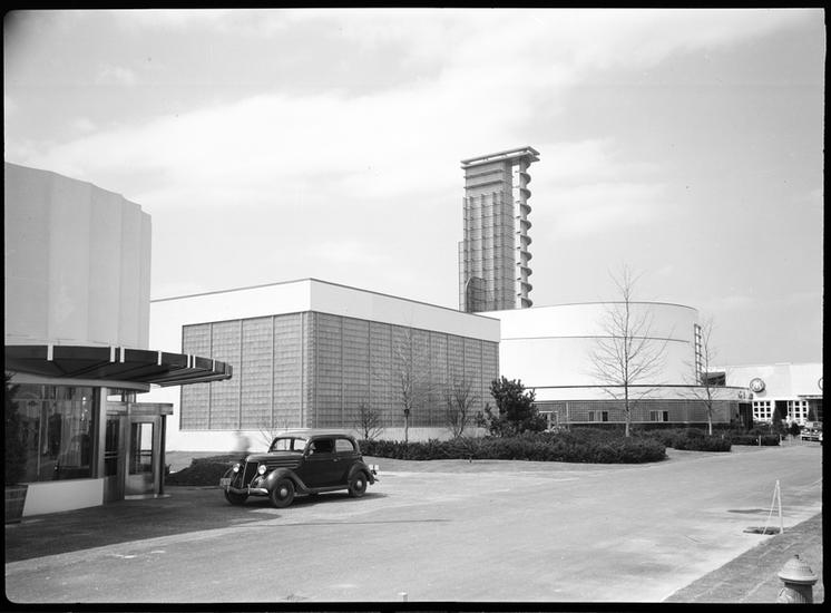 New York Worlds Fair. Glass Building. Fabricated glass display