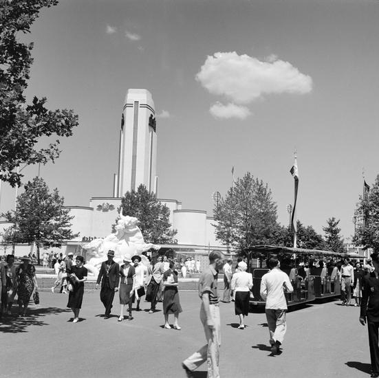 [People watching South Carolina Railroad display at the New York World's Fair.]