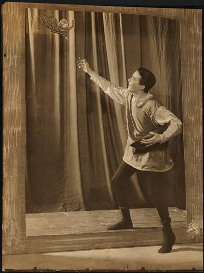 [Gregory Kelly as the Boy and Stuart Walker as the Ballad Singer singing "The Ballad of the Three Little Pigs" in "Six Who Pass While the Lentils Boil".]