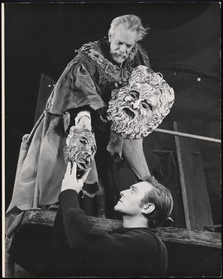 [Raymond Massey as Mr. Zuss and Christopher Plummer as Nickles in "J.B.".]