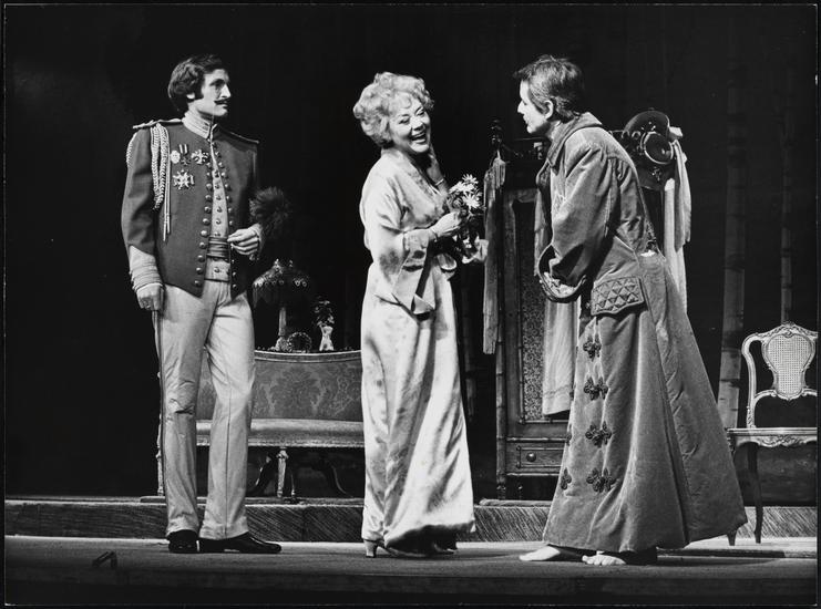 [Glynis Johns as Desiree Armfeldt, Laurence Guittard as Count Carl-Magnus Malcolm, and Len Cariou as Fredrik Egerman.]