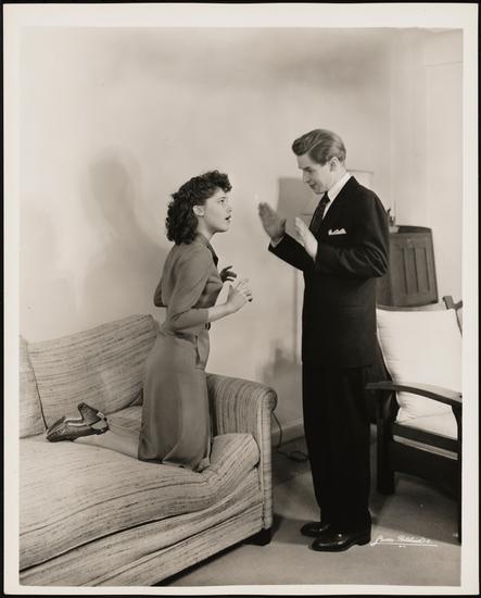 [Frank Wilcox as Albert D. Bliven, Louise Lorimer as Cora and Gloria Willis as Stella in "Take It as It Comes".]