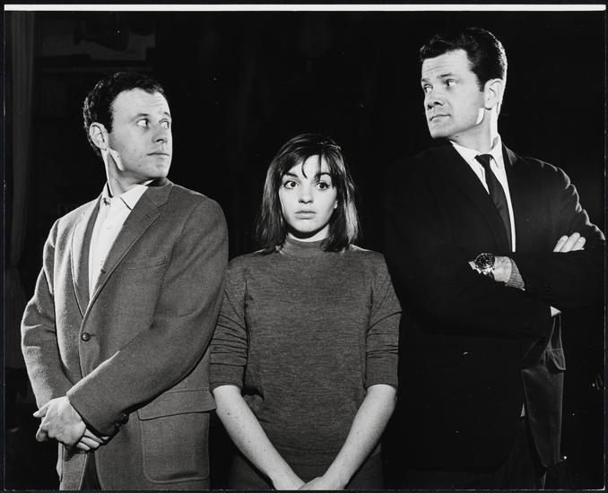 [Bob Dishy as Harry Toukarian, Liza Minnelli as Flora and Robert Kaye as Mr. Stanley in "Flora, the Red Menace".]