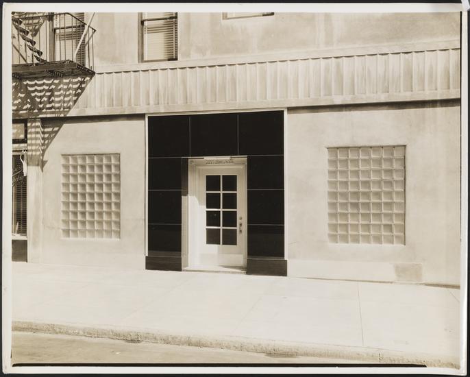 [Entrance to an apartment building, possibly the Riverside House.]