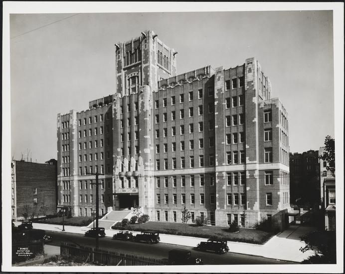 [136th Street and Lenox Avenue. Harlem Hospital, exterior.]
