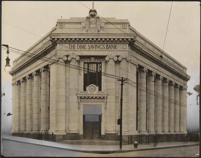 De Kalb Avenue and Fulton Street. Dime Savings Bank. General exterior.