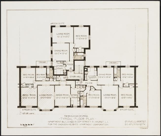 Typical floor plan, design for an apartment house, drawn for the Queensboro Corporation.