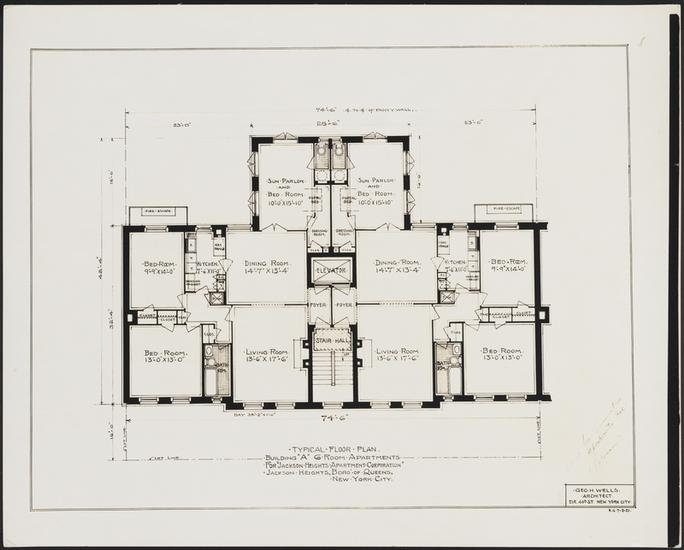Typical floor plan [for an] apartment house in Jackson Heights, dated August 7, 1916.