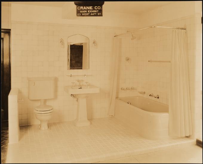 [101 Park Avenue. Architects Samples Corporation. Interior, bathroom exhibit.]