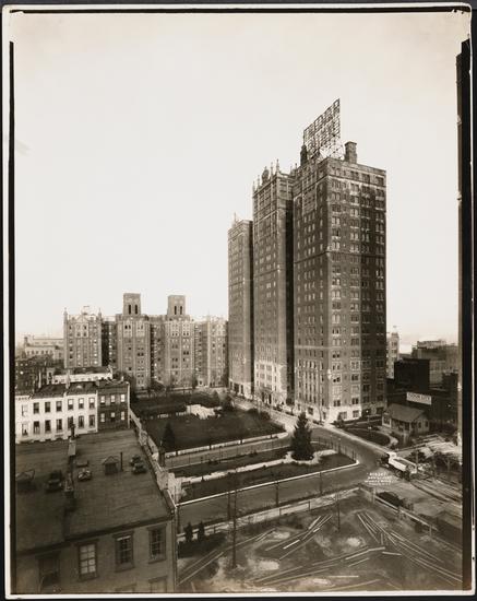 [East 42nd Street and First Avenue. Tudor City. View from roof terrace.]