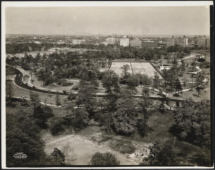Central Park West. Elevated view of Central Park looking southeast