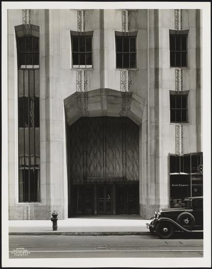 63 Wall Street. Entrance, close-up of exterior, to show electric eye doors