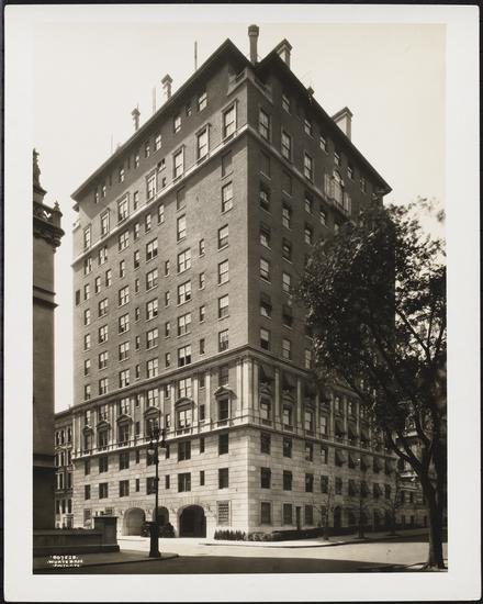 92nd Street and West End Avenue. Watercolor, rendering by Brigden, of apartment house.