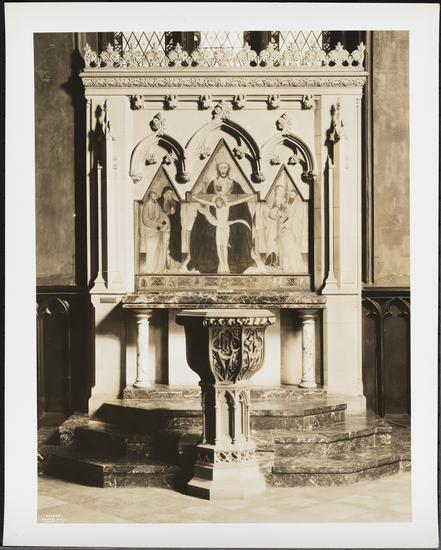 209 Broadway. Trinity Church. Interior, baptismal fountain.