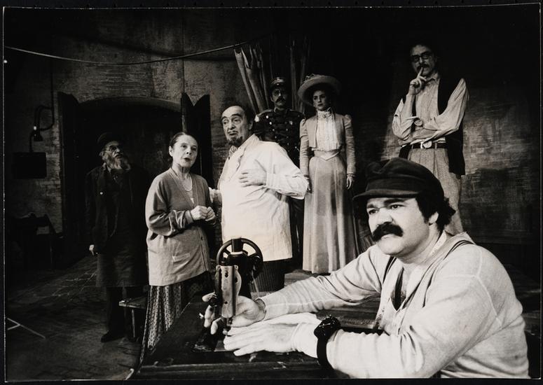 [Peter Kastner as Michael, Allan Arbus as Morris, Tovah Feldshuh as Myriam and Sam Levene as Arnold in "Dreyfus in Rehearsal".]