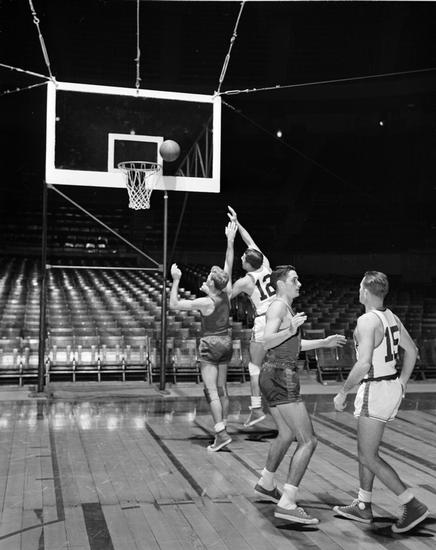 N.Y. Knickerbockers - Dick McGuire [New York Knicks players practicing.]