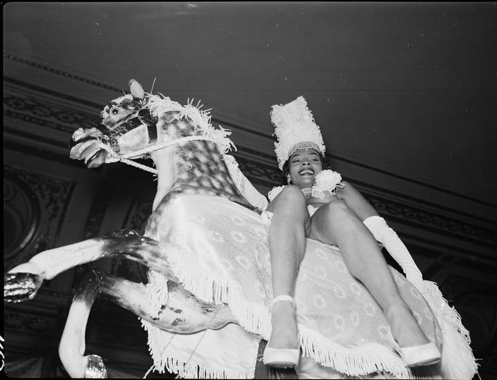 Art Students League Ball [Woman riding a model horse.]