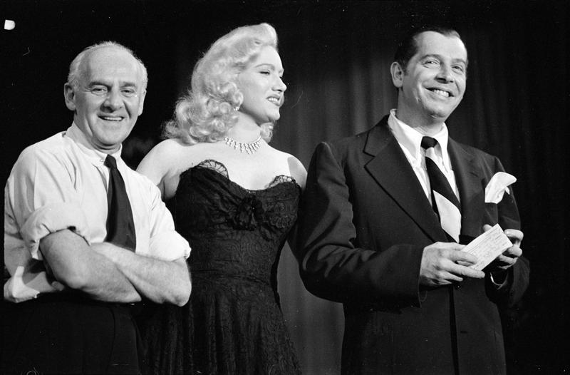 Milton Berle - Damon Runyon Cancer Fund [Man and a woman on stage at the telethon.]