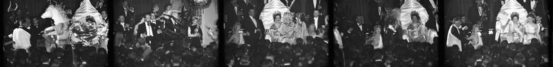 Art Students League Ball [Deborah Kerr with elaborately costumed guests on stage.]