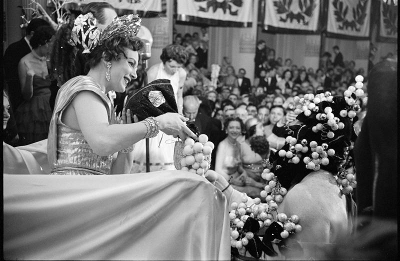 Art Students League Ball [Deborah Kerr with elaborately costumed guests on stage.]