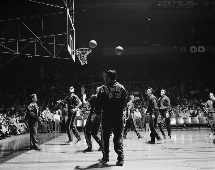 N.Y. Knickerbockers - Dick McGuire [New York Knicks warming up before a game with the Fort Wayne Pistons.]