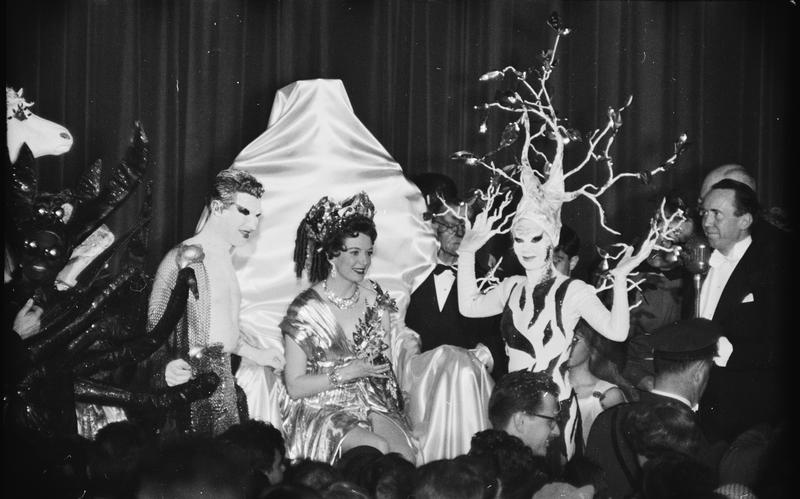 Art Students League Ball [Elaborately costumed guests with Deborah Kerr on a stage.]
