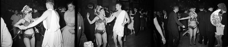 Art Students League Ball [Couple in elaborate costumes dancing.]