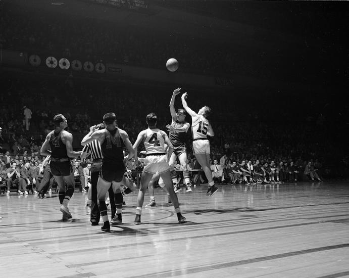 N.Y. Knickerbockers - Dick McGuire [Basketball game between the New York Knicks and the Fort Wayne Pistons.]
