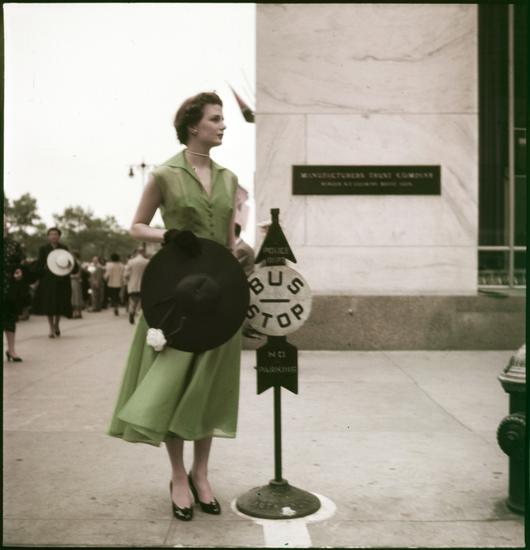 Fifth Avenue - Brigida Dammes, Laraine Day, Pat Geoghegan, Mary Damon. [Woman modeling on the sidewalk.]