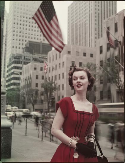Fifth Avenue - Brigida Dammes, Laraine Day, Pat Geoghegan, Mary Damon. [Woman modeling on the sidewalk.]