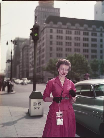 Fifth Avenue - Brigida Dammes, Laraine Day, Pat Geoghegan, Mary Damon. [Woman modeling on the sidewalk.]