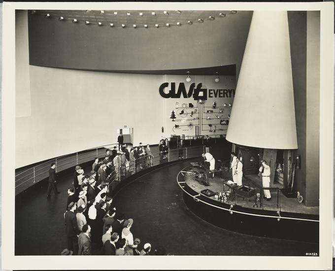 New York Worlds Fair. Glass Building. Fabricated glass display
