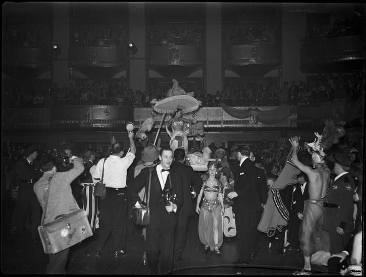 Art Students League of New York "Dream Ball" [Woman being carried into the party on a litter.]