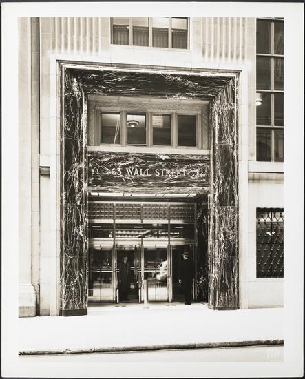 63 Wall Street. Entrance, close-up of exterior, to show electric eye doors