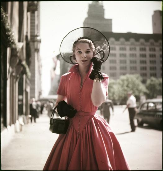 Fifth Avenue - Brigida Dammes, Laraine Day, Pat Geoghegan, Mary Damon. [Woman modeling on the sidewalk.]