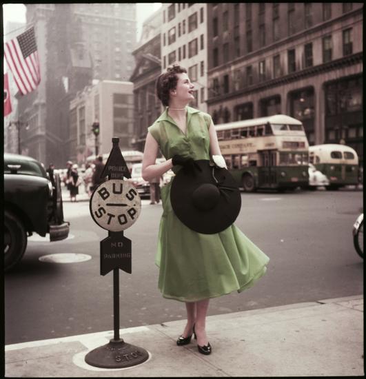 Fifth Avenue - Brigida Dammes, Laraine Day, Pat Geoghegan, Mary Damon. [Woman modeling on the sidewalk.]