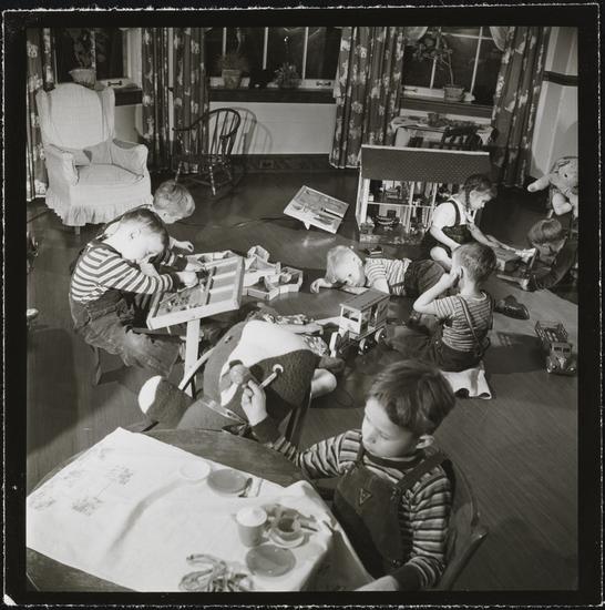 Orphanage [Girl playing with a dollhouse.]