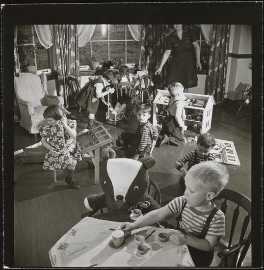 Orphanage [Girl playing with a dollhouse.]