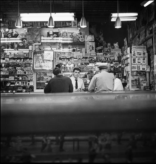 All Around the Town - Miscellaneous New York City Scenes [Men shopping at a souvenir shop on 42nd Street.]