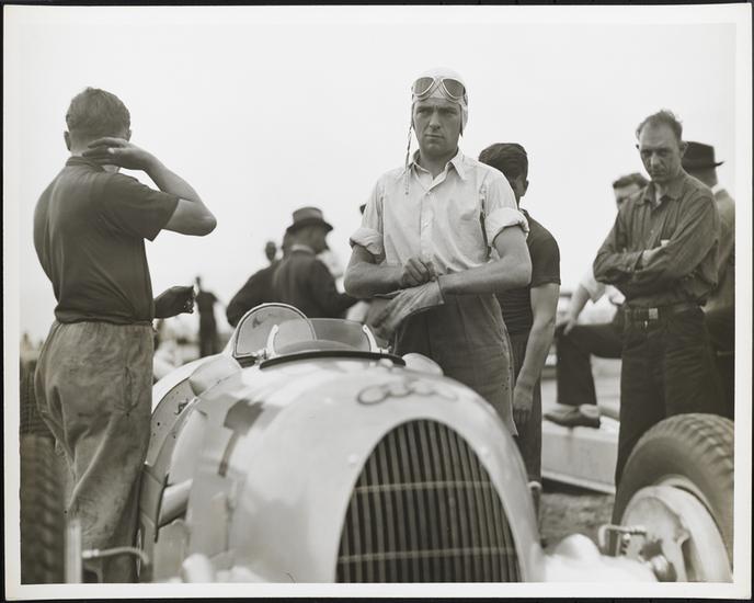 Westbury. Roosevelt Raceway. Vanderbilt Cup Race. Racers Ernst von Delius, Tazio Nuvolari and Bernd Rosemeyer