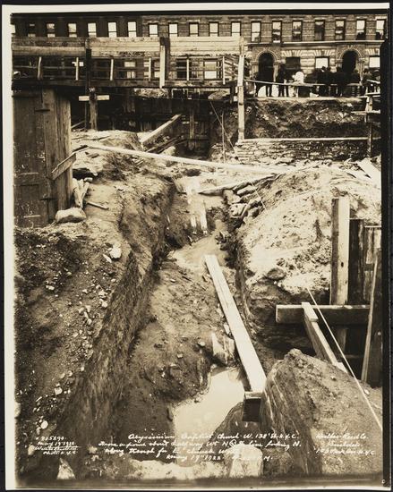 Abyssinian Baptist Church W 138 St. N.Y.C. Looking South along [...] trench for E. Wall to church & West wall to Community House