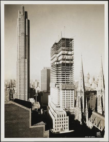 Changing New York [Aerial view of St. Patrick's Cathedral and Rockefeller Center.]