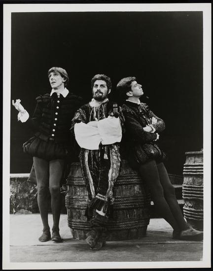 [Brian Murray as Rosencrantz, Noel Craig as Hamlet and John Wood as Guildenstern in "Rosencrantz and Guildenstern Are Dead".]