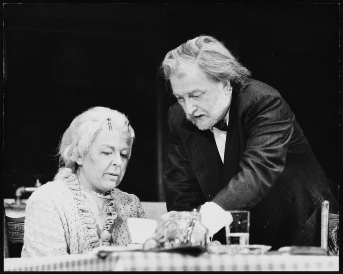 [Sada Thompson in the title role and Conrad Bain as Swede in "Celia".]