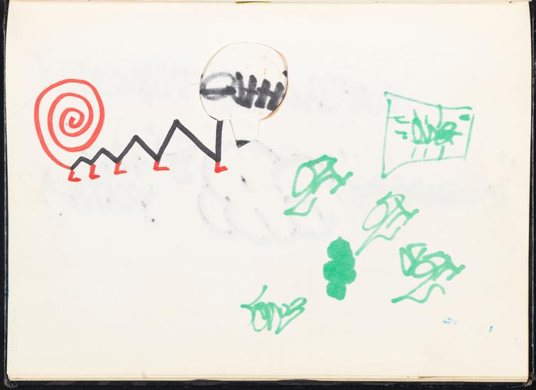 "DAZE" Out 2 "BOMB" [Page in DAZE's sketch pad.]